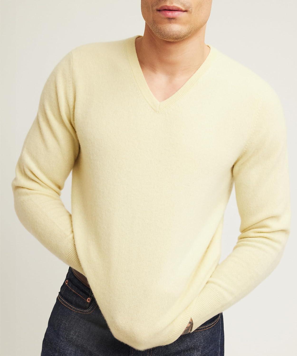 NAADAM Men’s Cashmere V-Neck(Lemon)