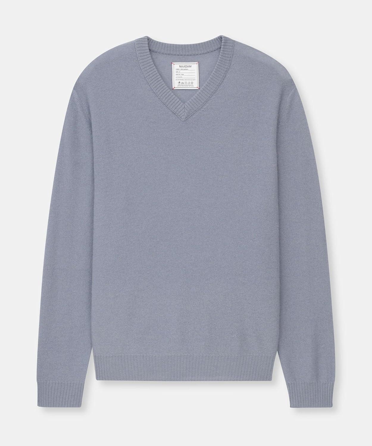 NAADAM Men’s Lightweight Reversible Cashmere V-Neck Sweater(Pewter)