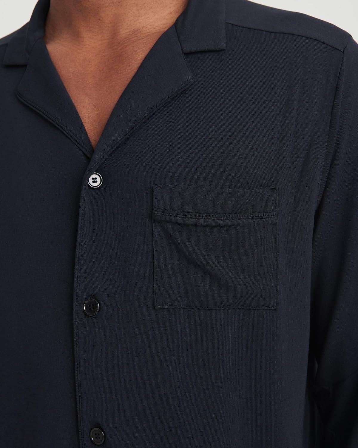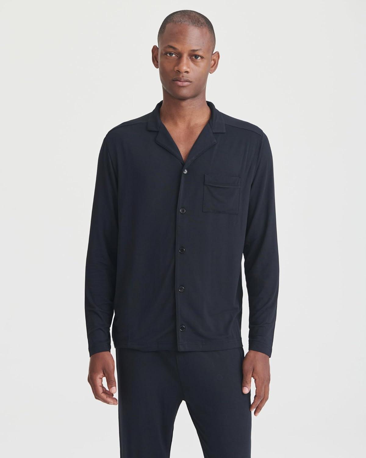NAADAM Men’s Pajama Button Up Shirt Set(Black)