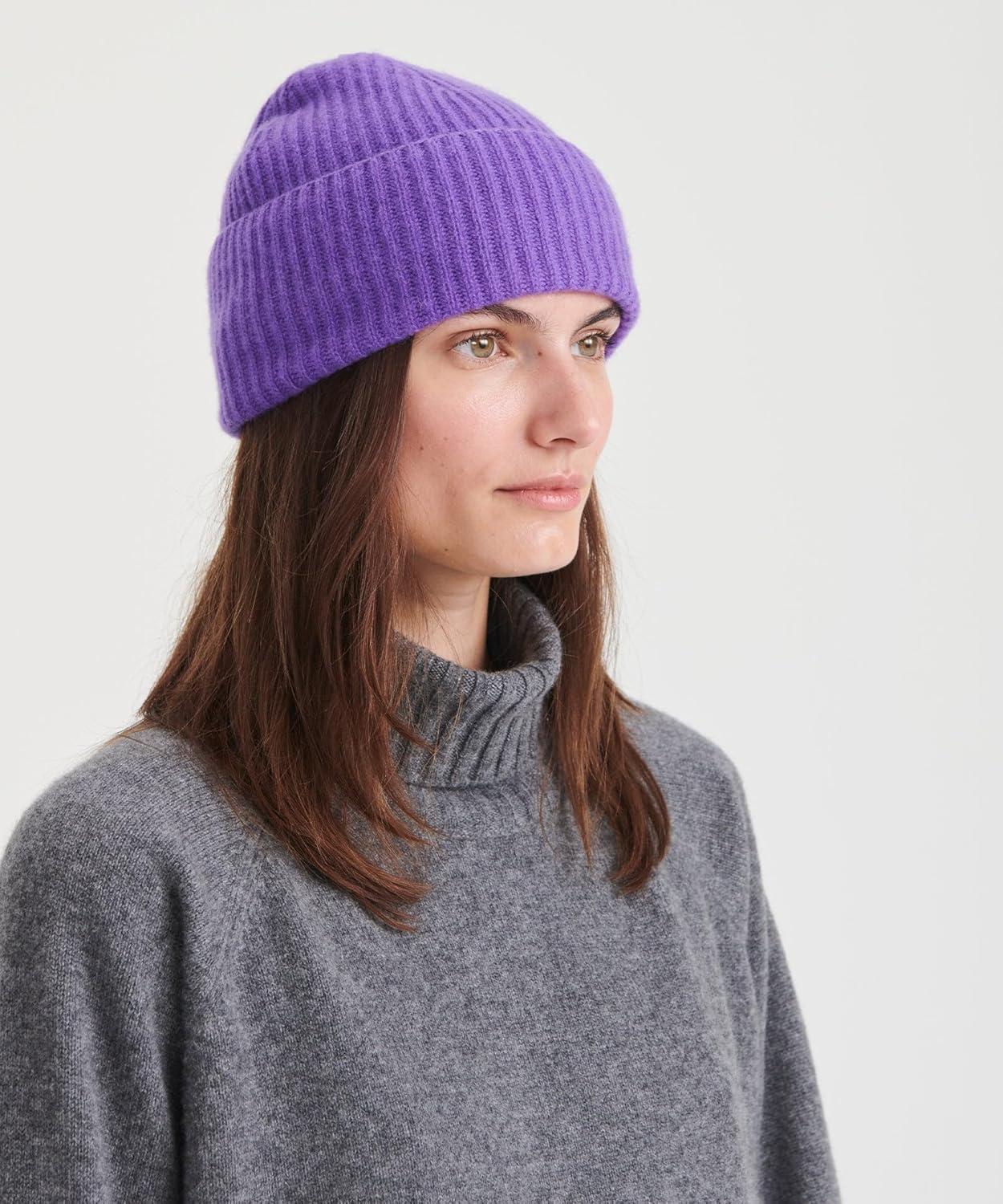 NAADAM Signature Cashmere Ribbed Beanie(Ultra Violet)