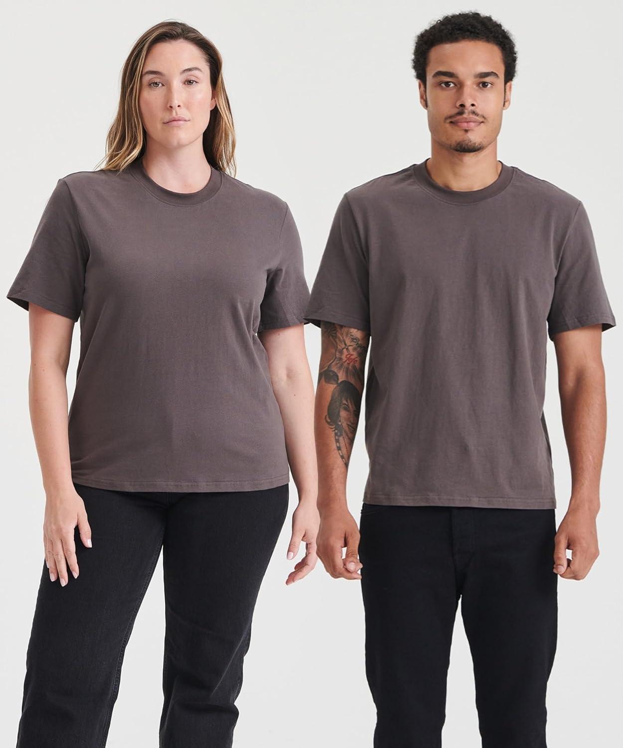 Made from cotton, feels like cashmere. The Tee is our perfect basic: made from cashmere-level soft, peach-brushed organic cotton, designed with a relaxed, universal fit, and easy to wear alone or under all your favorite knits.