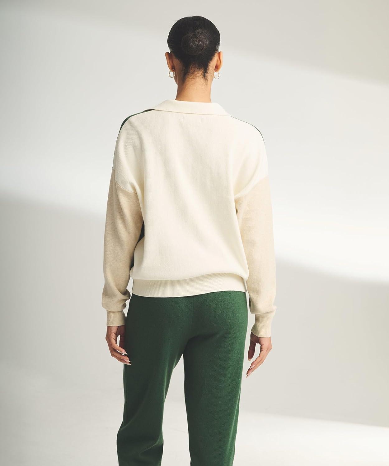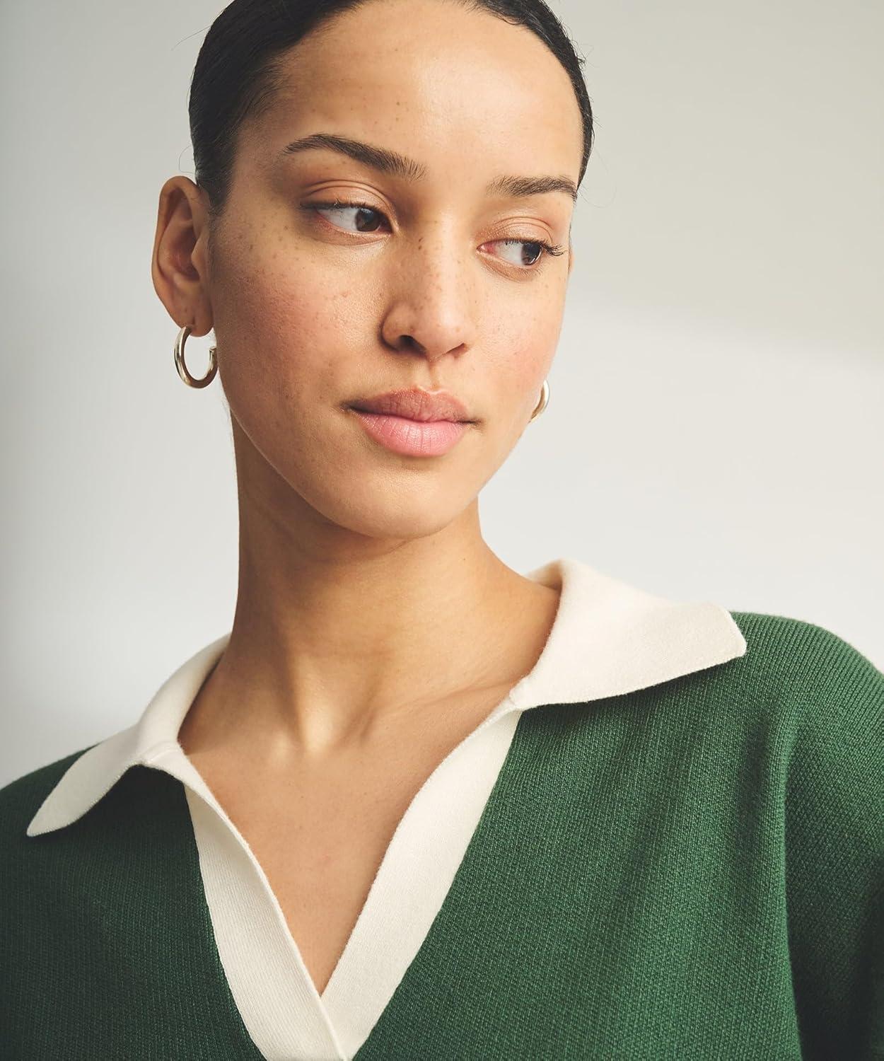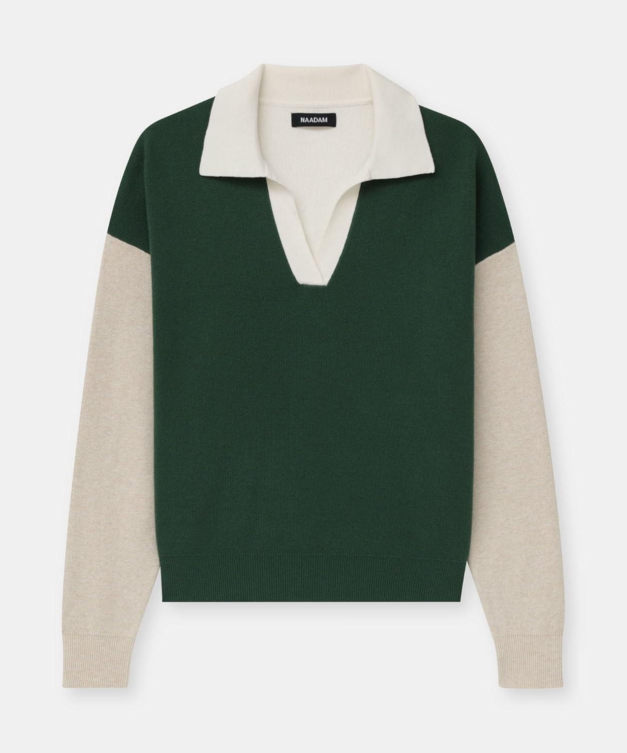 NAADAM Women’s Cafe Cotton Cashmere Colorblock Polo(Pine)