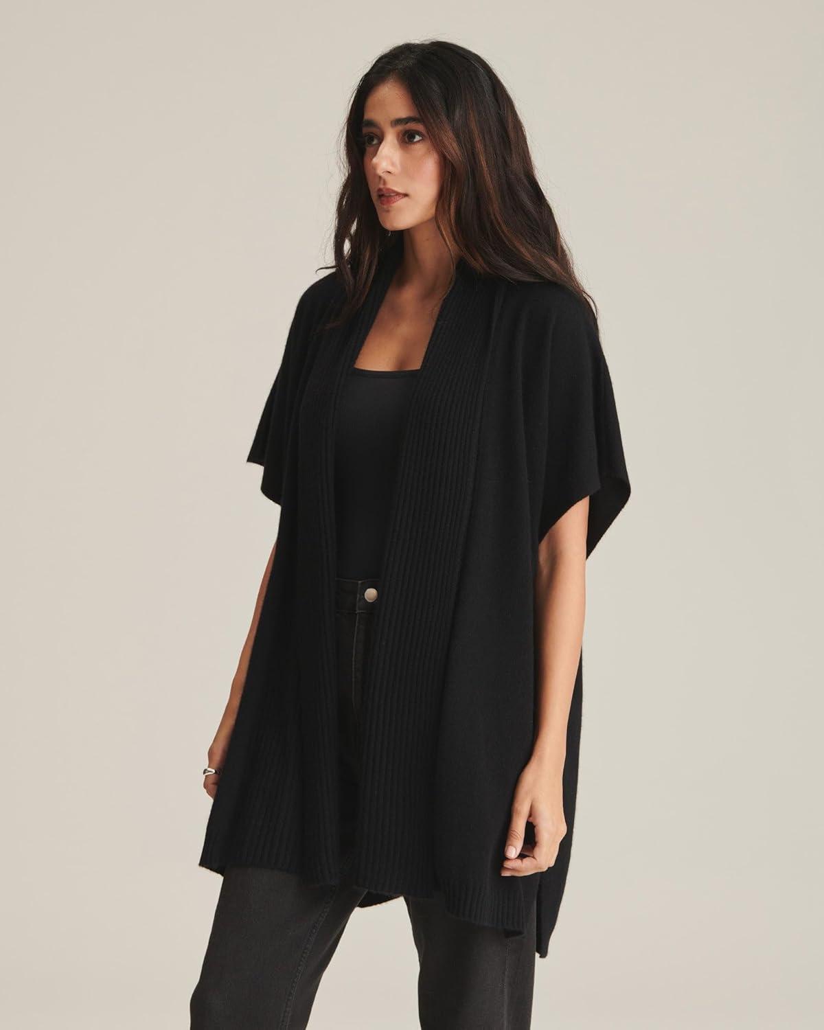 NAADAM Women’s Cashmere Poncho Sweater(Black)