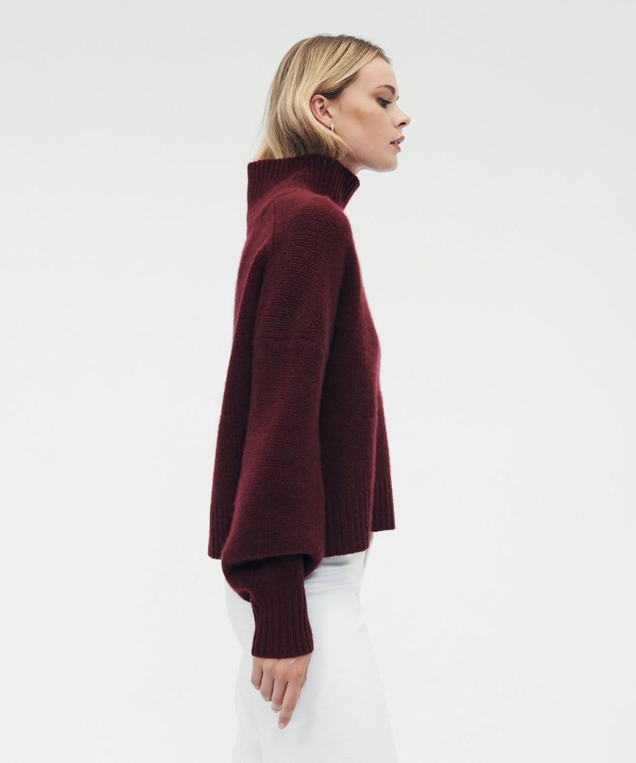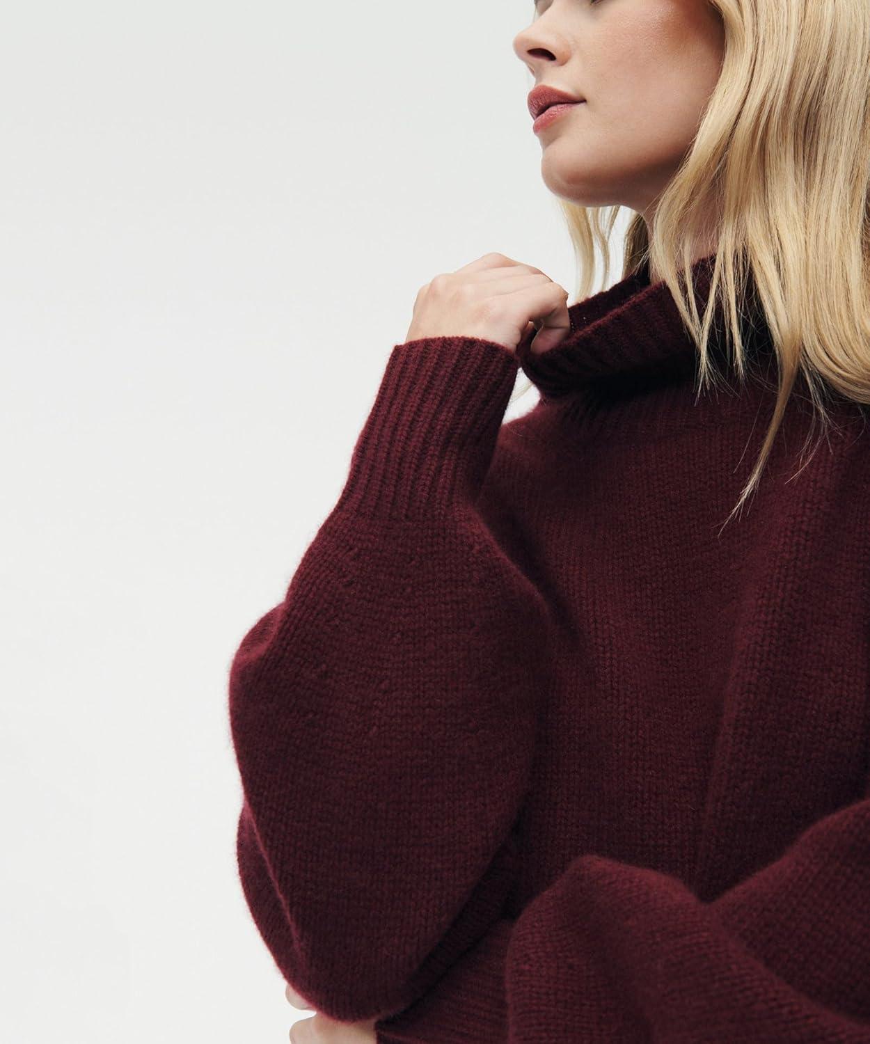 NAADAM Womens Luxe Cashmere Oversized Turtleneck(Merlot)