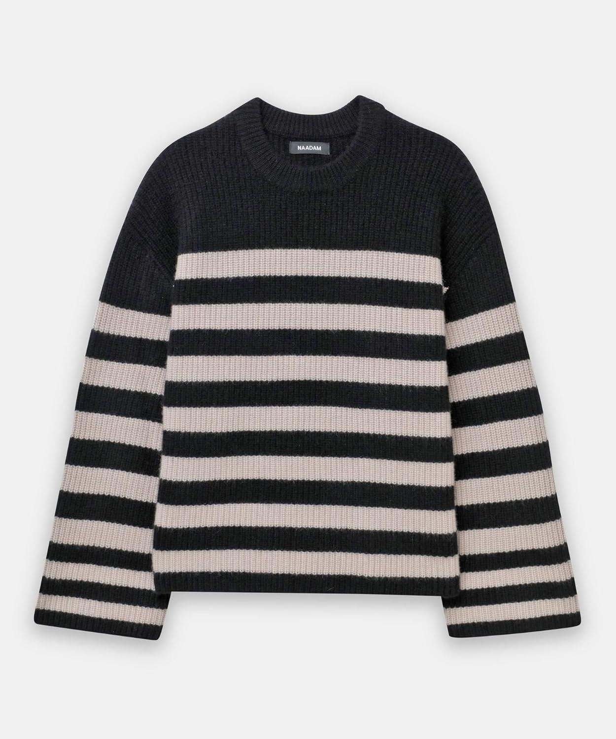 NAADAM Women’s Super Luxe Cashmere Striped Crewneck(Black Combo)