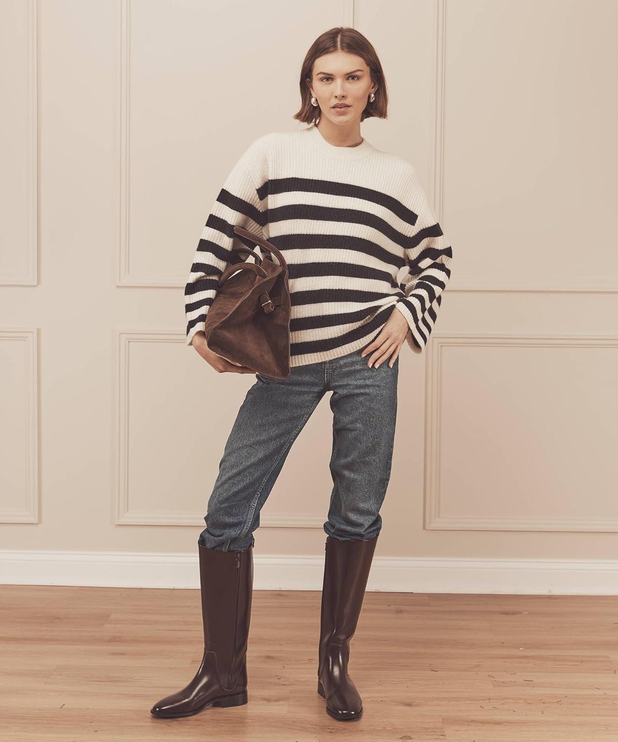 NAADAM Women’s Super Luxe Cashmere Striped Crewneck(White Combo)