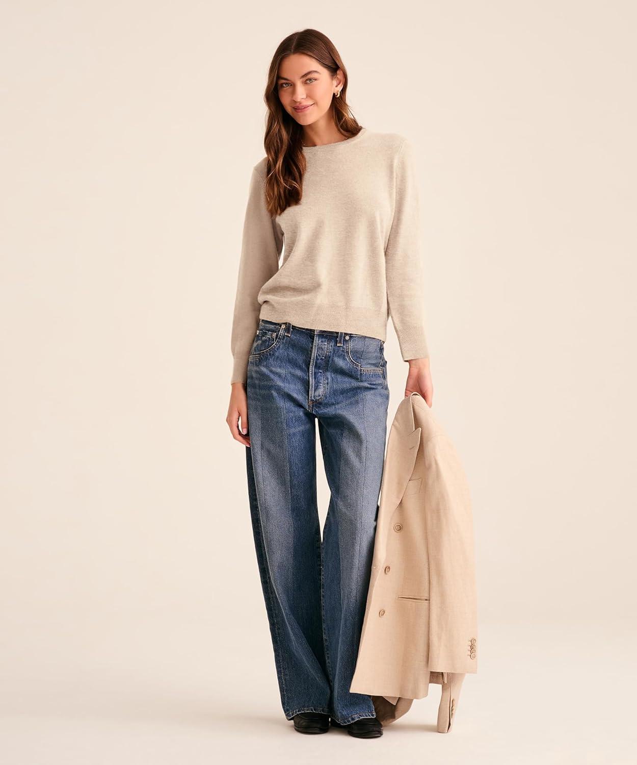 NAADAM Womens The Original Cashmere Crewneck Sweater(Oatmeal)